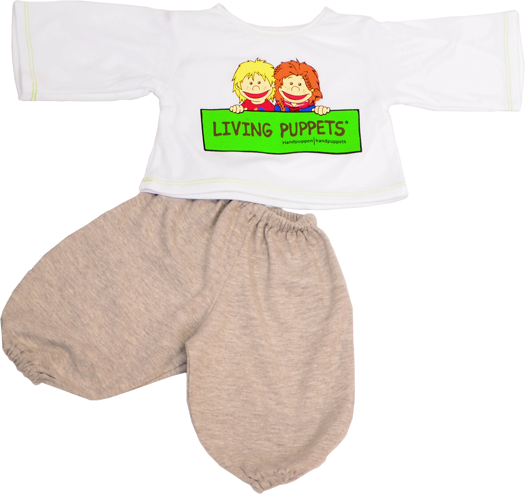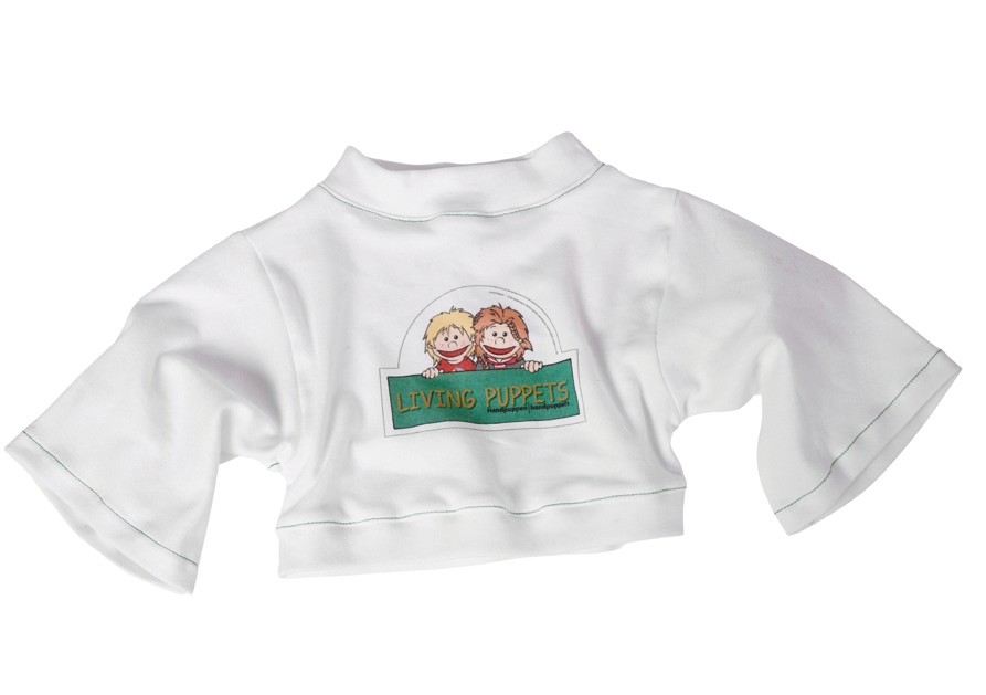T-Shirt Living Puppets, weiß mit Aufdruck . Gehört einfach in jeden gut ausgestatteten Puppenschrank.